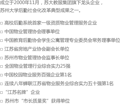 清潔與綠化養(yǎng)護(hù) 會(huì)務(wù)接待 秩序維護(hù) 設(shè)備維護(hù) 家政服務(wù) 學(xué)生公寓管理 餐飲服務(wù) FMS服務(wù) 咨詢顧問服務(wù)